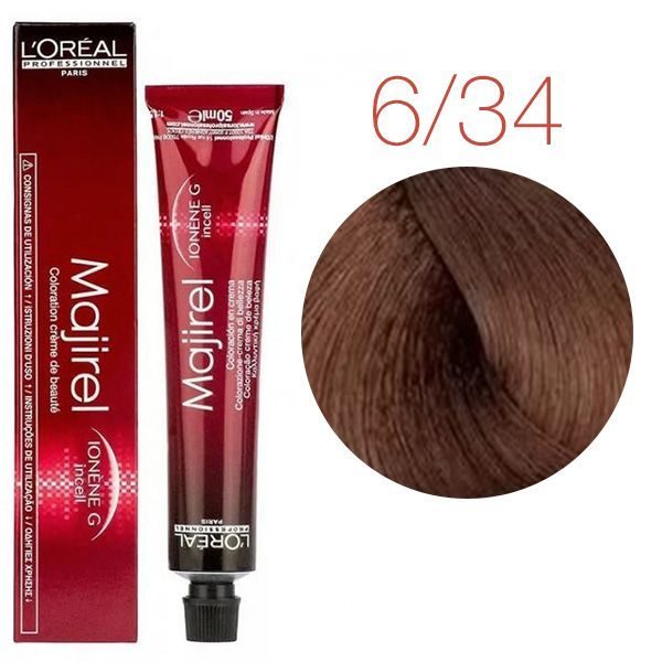 L’Oreal Professionnel Majirel 6.34 (Темный блондин золотистый медный) — Краска для волос 50ml